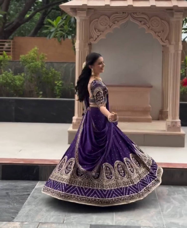 Lavish Orchid Golden Embroidery Silk Lehenga Choli